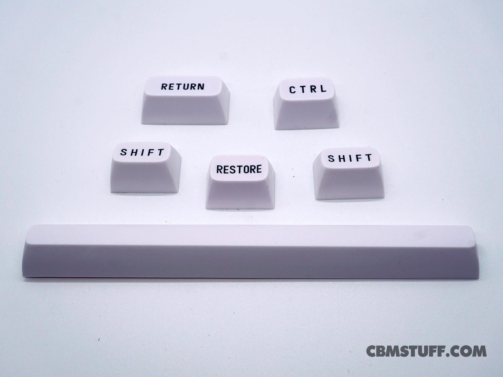 This set contains the 6 large keycaps, including CTRL, RESTORE, LEFT SHIFT, RIGHT SHIFT, RETURN, and SPACE BAR.  Main keycaps and function keycaps are not included and sold separately!